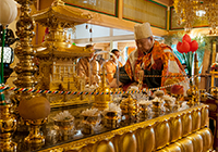 誕生仏の像をその中央に安置し、柄杓で像に甘茶をかけて祝います。